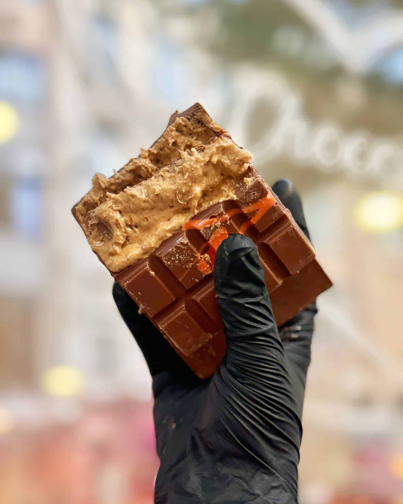Just like the filled pistachio chocolate bars (aka the viral Dubai knafeh kunefe chocolate), this Spice Field chocolate bar is filled with kadayif.